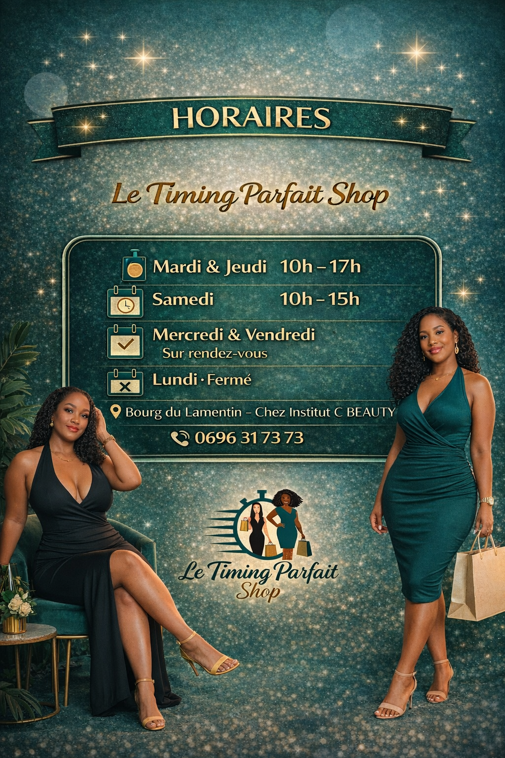Bienvenue chez Le Timing Parfait Shop, là où le bon moment rencontre le bon look.